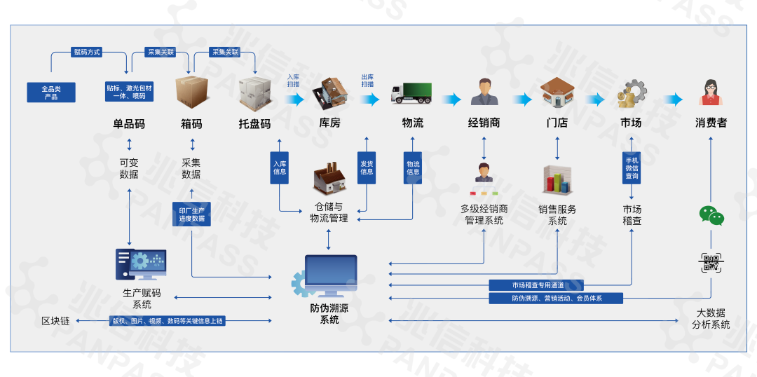 兆信科技的“一物一码”防伪溯源解决方案,以区块链、大数据、AI等底层技术为支撑,整合码数据、物流数据、产品数据、营销数据等多维度信息,通过PC端大数据管理系统、移动端管理应用、小程序应用等多终端布局,实现仓储、物流、窜货、盗版、读者数据的实时监测,为企业决策提供精准数据洞察。