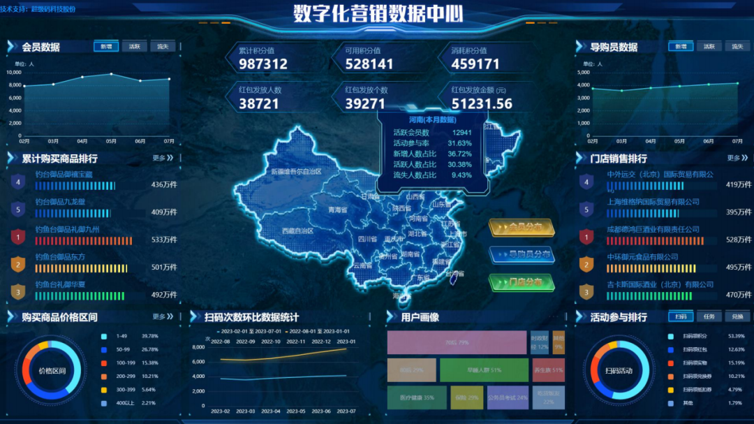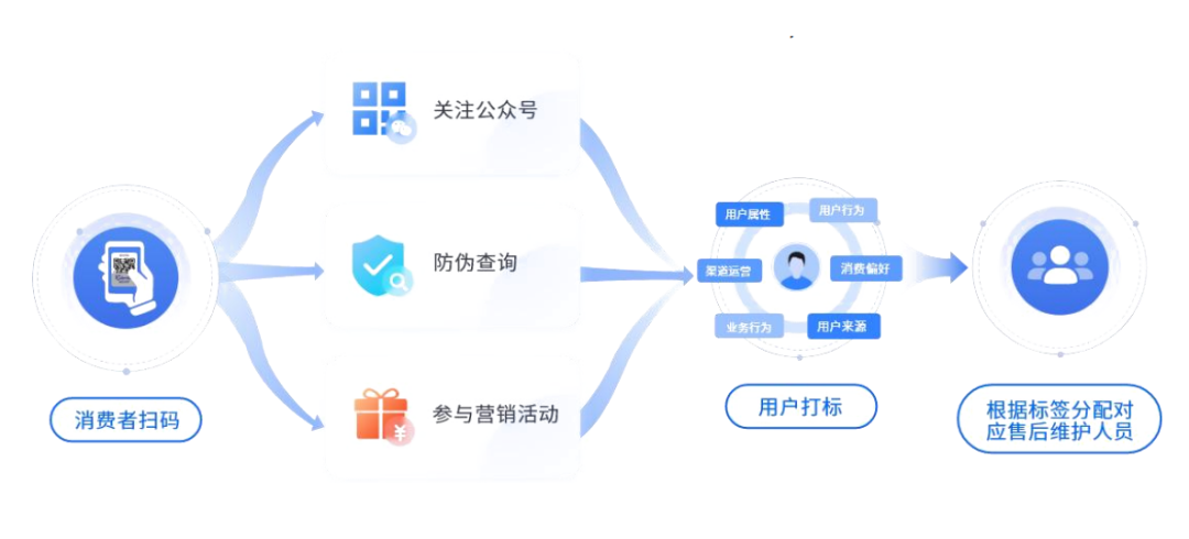 消费者扫码后,系统后台可直接抓取终端扫码数据、以及终端动销数据,如扫码地区、产品所属经销商/所属门店、门店开箱次数、导购卖货频次等,建立精细化的消费者画像,并对其实行全生命周期的监控,为品牌实施精准营销和商品管理提供数据支撑,从而提升品牌产品销量,降低营销成本,提升消费者复购率。